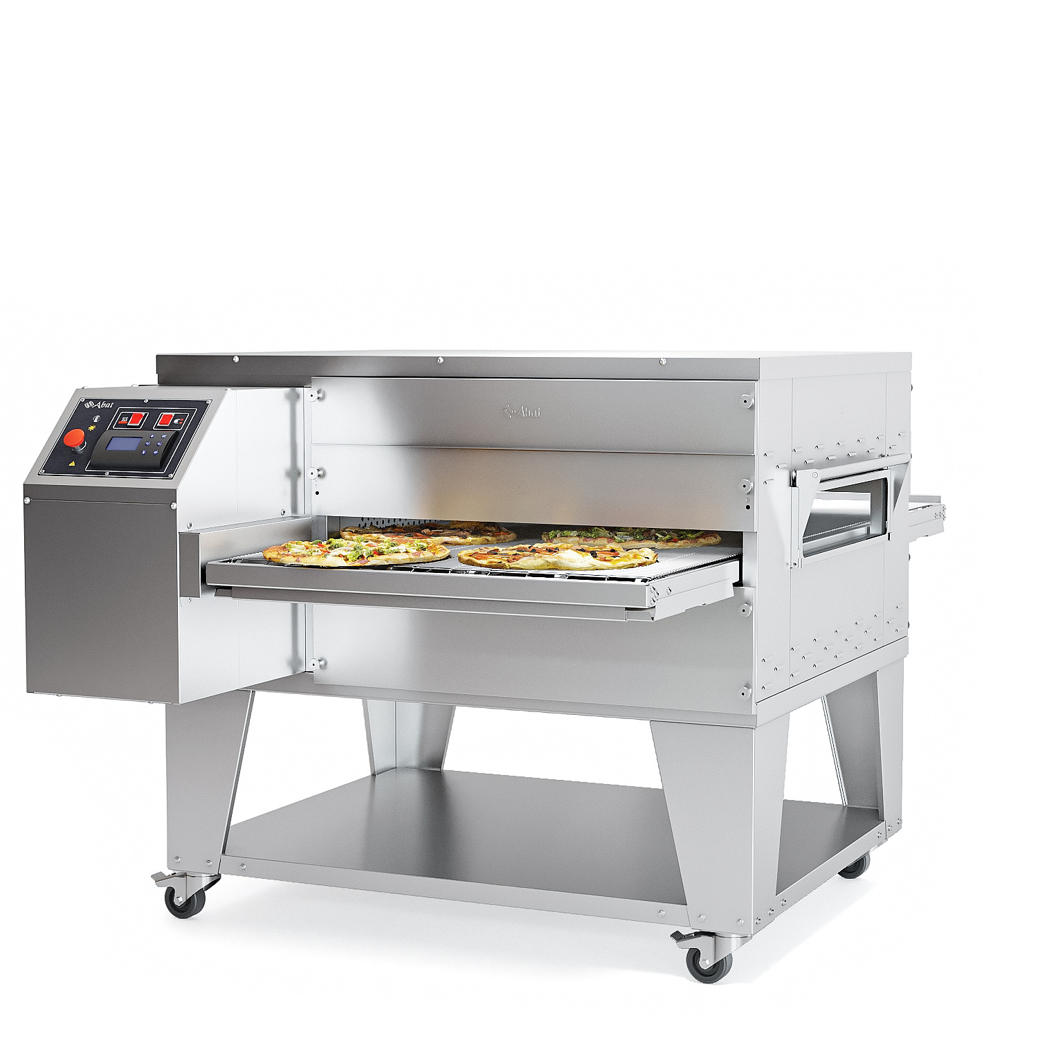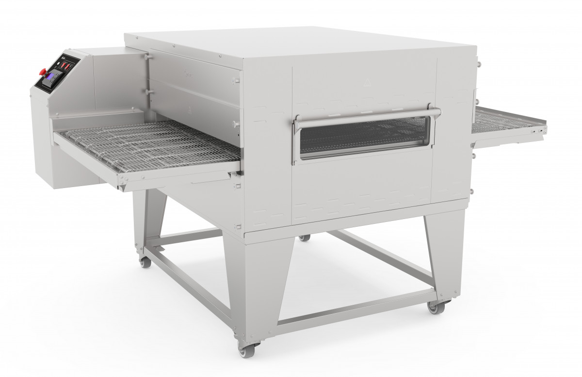 Внутренние размеры камеры составляют 1014х853 мм, а размеры конвейера — 1830х812 мм, что позволяет эффективно использовать пространство и загружать до 8 заготовок одновременно. Производительность одного уровня печи достигает 82 пицц в час при времени выпекания 3,5 минуты.