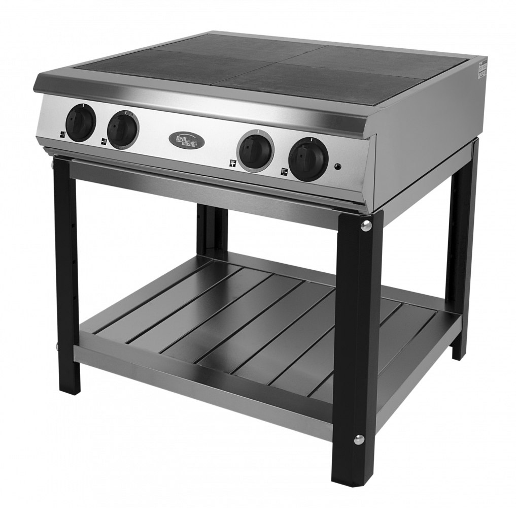 900x800x900, 120 кг,4 конфорки 295х415 мм, четыре 4-х позиционных переключателя, 12 кВт, 380В, плита полностью из - н/стали, разборная конструкция плиты и подставки, г.брутто 1000х1000х700, 112 кг
