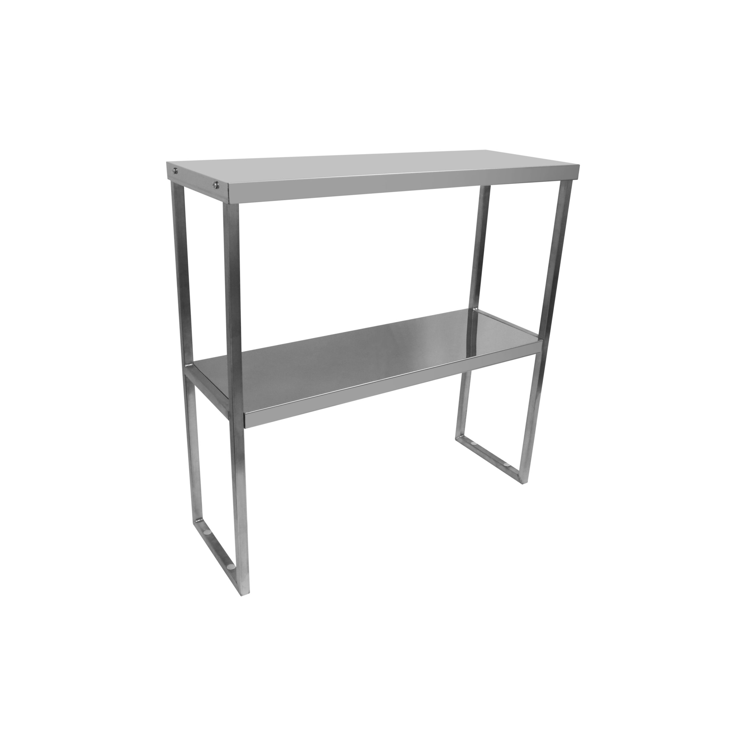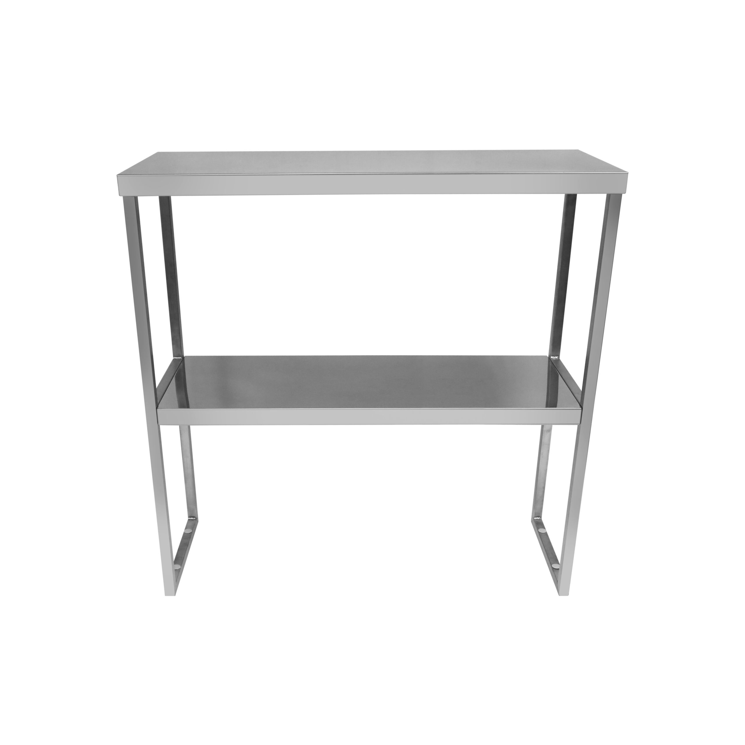 Полка имеет два уровня, что позволяет эффективно организовать пространство. Толщина металла составляет 0,6 мм, а каркас выполнен из трубы размером 20х20 мм. Максимально допустимая равномерно распределенная нагрузка на полку достигает 15 кг.