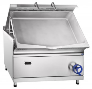 Модель оснащена механизмом подъема и опускания чаши, а также системой фиксации крышки в любом положении. Температура жарочной поверхности плавно регулируется в диапазоне от +100 до +340 °C, а разогрев до 230 °C занимает всего 14 минут. Сковорода может работать как на природном, так и на сжиженном газе, при этом в комплект входят две съемные форсунки для сжиженного газа.