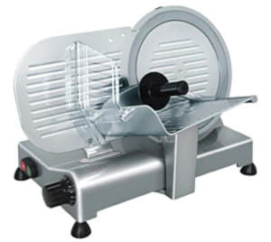 Рез 165 х 130 мм. Полуавтоматический слайсер для нарезки мяса, сыра, колбасных изделий и других продуктов питания. Нож из хромированной стали, корпус из лакированного алюминия с пластиковыми деталями. Съемное заточное устройство.