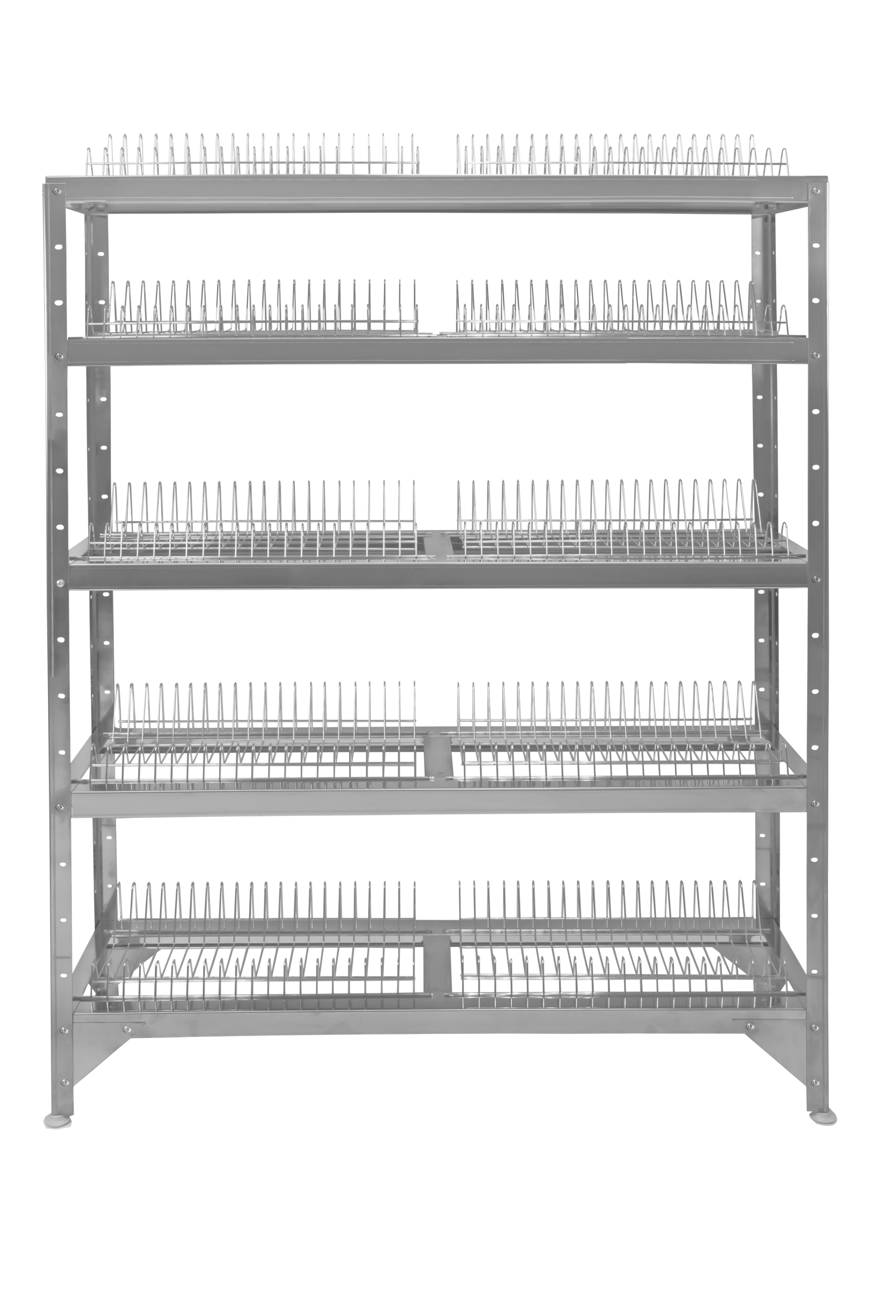 Стеллаж для тарелок Hessen СТ-1,8×6/5 из нержавеющей стали – это идеальное решение для предприятий общественного питания и торговых точек, предназначенное для хранения, размещения и сушки посуды. Конструкция включает пять решетчатых полок и четыре стойки, выполненные из оцинкованной, крашеной или нержавеющей стали. Полки изготовлены из нержавеющей стали, а прутья – из никелированной стали, что обеспечивает долговечность и надежность. Полки можно устанавливать на различных уровнях с шагом 96 мм, что позволяет адаптировать стеллаж под ваши нужды.