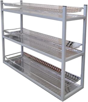 Кухонный стеллаж VIATTO ПКТ-3-Н ЮТ предназначен для хранения или сушки тарелок и столовых приборов. Изготовлен из нержавеющей стали AISI 430 толщиной 0.8 мм, сетки хромированные.