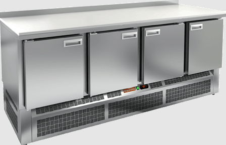 Объем устройства составляет 430 литров, а холодильный агрегат расположен в нижней части, что способствует эффективному использованию пространства. Столешница выполнена из прочного полипропилена, а корпус изготовлен из нержавеющей стали, что гарантирует долговечность и легкость в уходе.