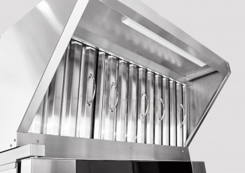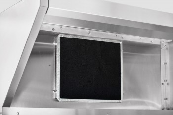 Зонт не занимает полезное пространство на кухне, так как устанавливается на крышу конвекционной печи. Обработанные края обеспечивают безопасность при эксплуатации.