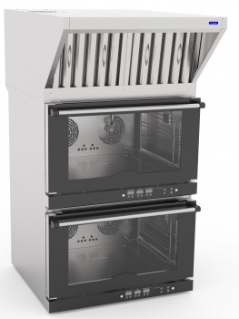 Установка зонта не занимает полезное пространство на кухне, так как он монтируется на крышу конвекционной печи. Края устройства обработаны для обеспечения безопасности персонала.